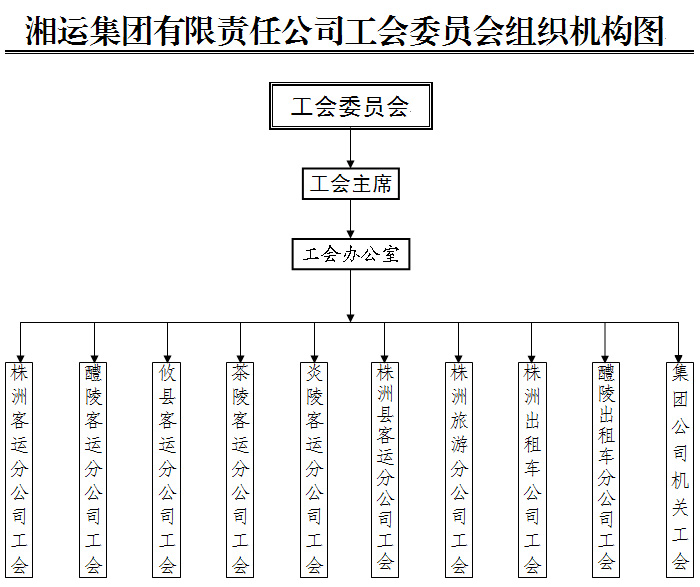 湘運(yùn)集團(tuán)有限責(zé)任公司系湖南省株洲地區(qū)最具規(guī)模、舉足輕重的專業(yè)化道路運(yùn)輸龍頭企業(yè),是以運(yùn)輸產(chǎn)業(yè)為主,房地產(chǎn)開發(fā)、商貿(mào)餐飲等為輔的多元化經(jīng)營(yíng)的企業(yè)集團(tuán)。集團(tuán)公司設(shè)工會(huì)委員會(huì),下設(shè)9個(gè)二級(jí)工會(huì),現(xiàn)有工會(huì)會(huì)員1026人,員工入會(huì)率達(dá)100%。